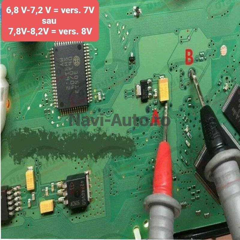 Identificarea tipului de ceasuri (7V sau 8V) se poate realiza prin măsurarea curentului in placa electronica a ceasurilor, cu ajutorul multimetrului in zonele evidențiate in poza din anunț.